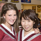 高校留学中江りえこさん ドーバーベイ高校へ留学。卒業後上智大学へ進み、金融機関に就職。隣は日本で英語を教えている高校時代の友達のエミリーです。 |